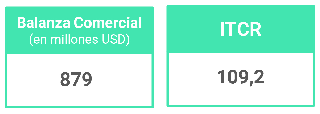Asimismo la balanza comercial en junio resulto superavitaria en 879 millones USD por decimonoveno mes consecutivo.Esta situación se debe principalmente a un aumento en los saldos exportables.